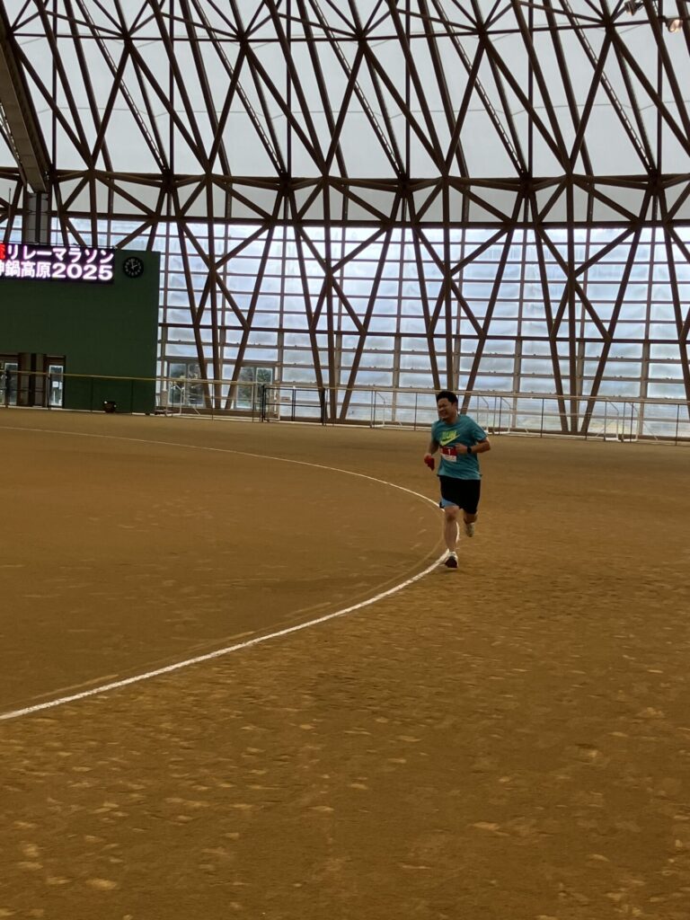 昨年同様、但馬ドーム外周約1.4kmを交代で3時間走り続けます。