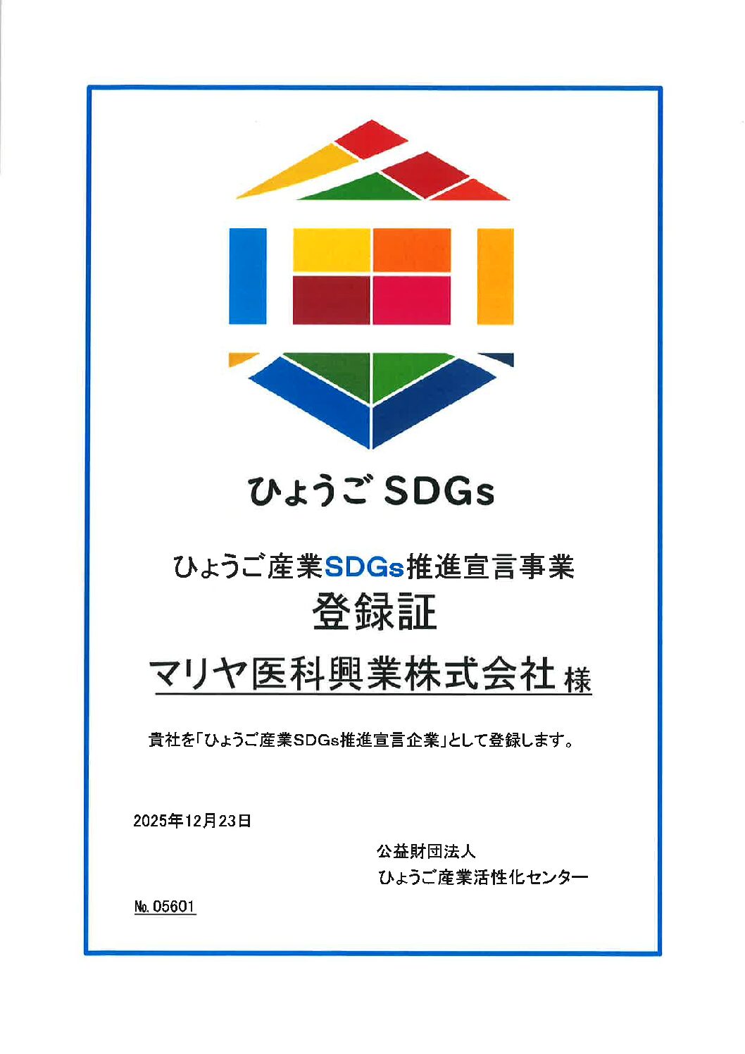 ひょうご産業SDGs推進宣言企業として登録されました。